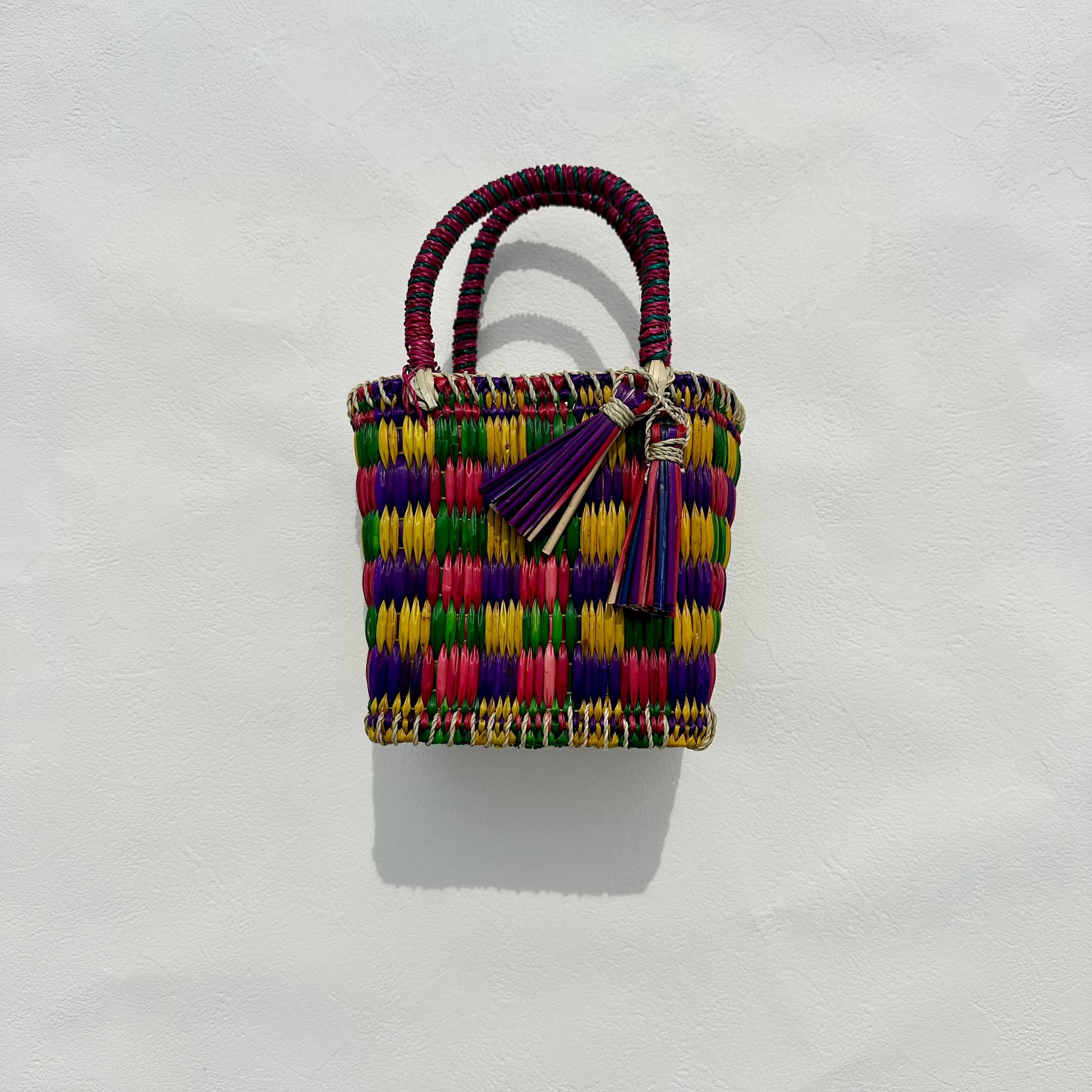 いぐさを使用したカゴバッグ。