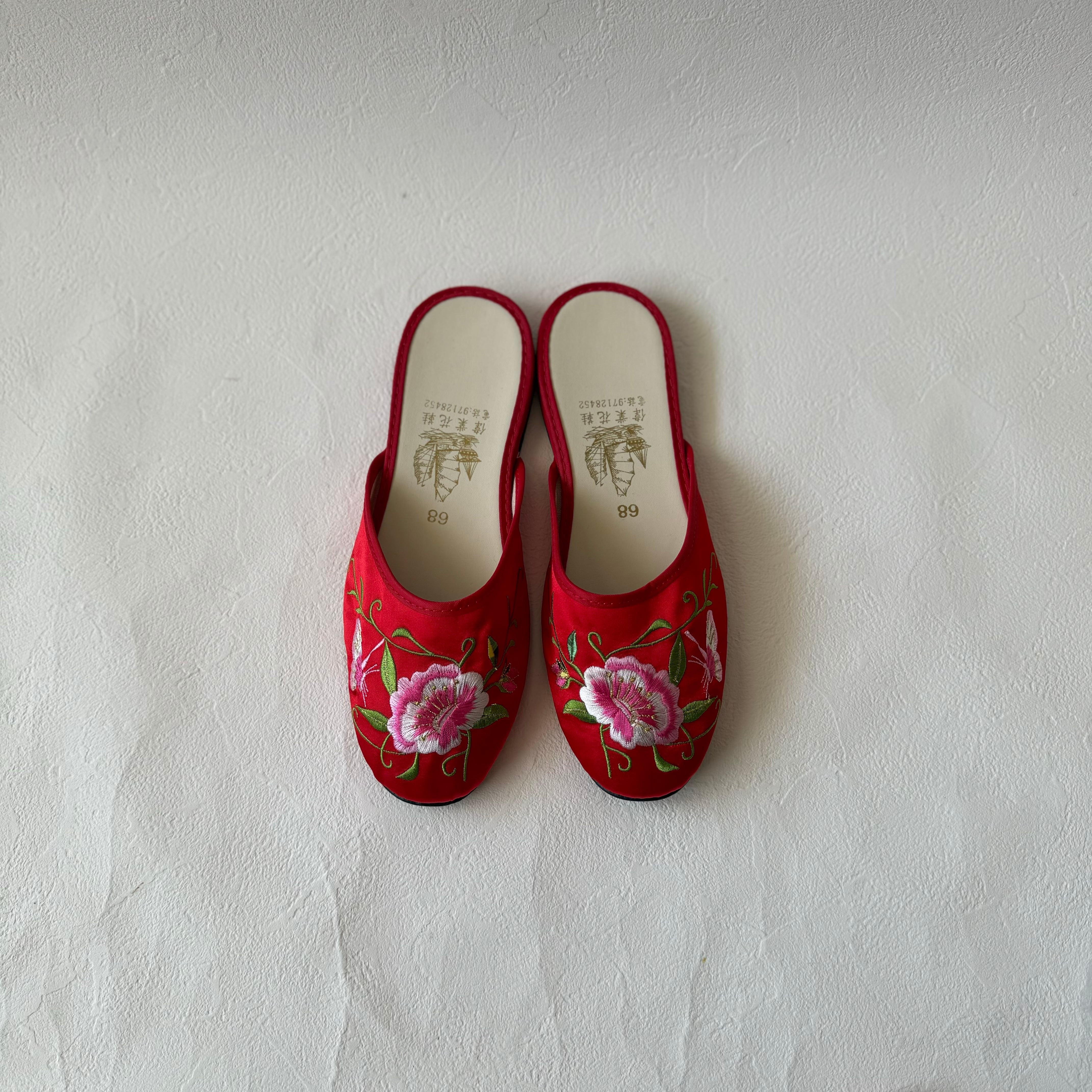 パキッとした赤は、香港の刺繍スリッパの定番でもありbuibui marcheでも大人気色です!